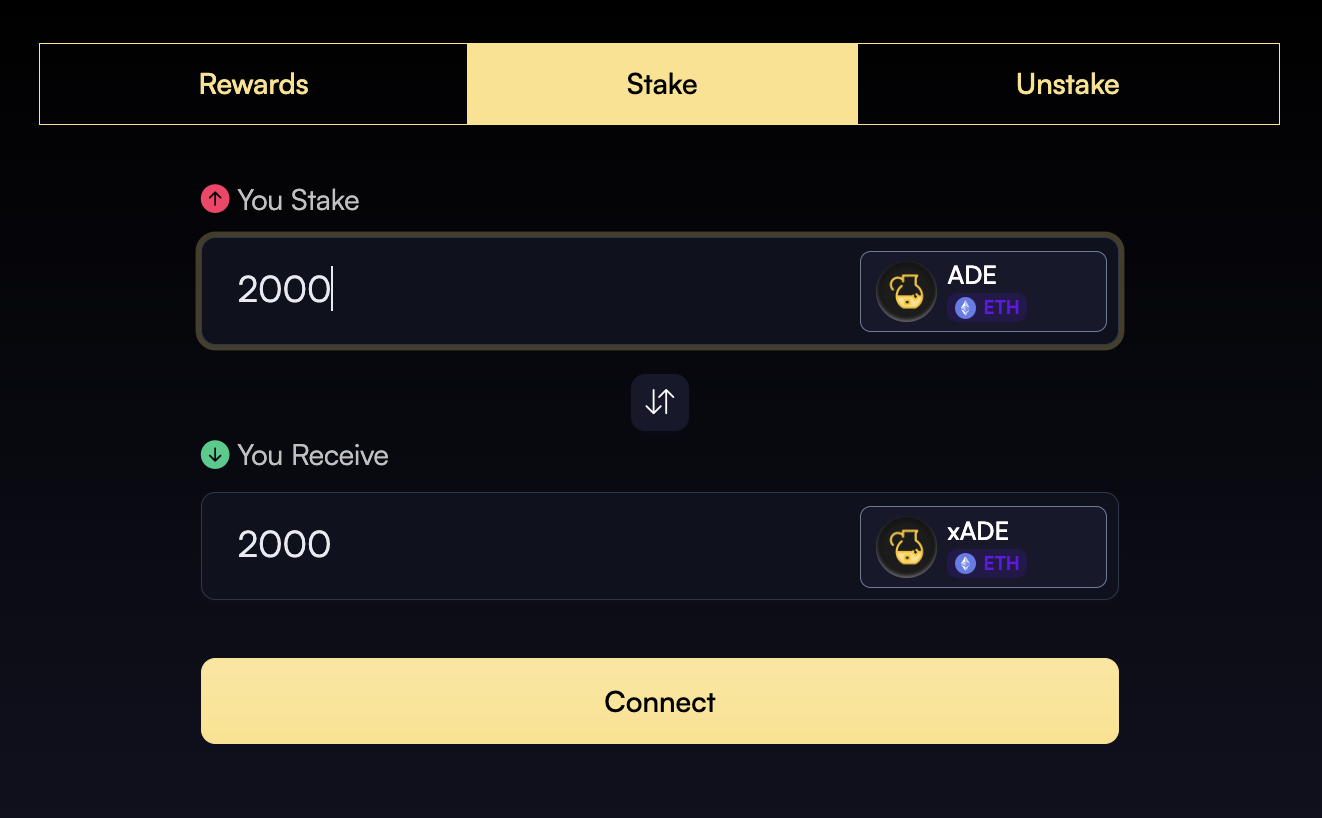 You can stake your $ADE tokens to automatically accrue a proportional share of all platform fees.